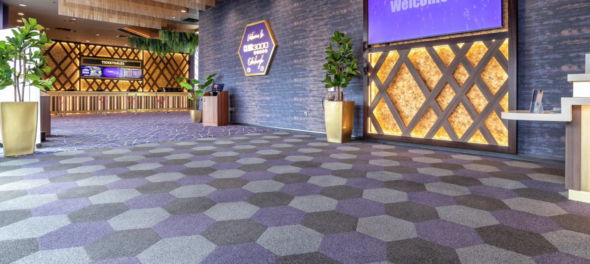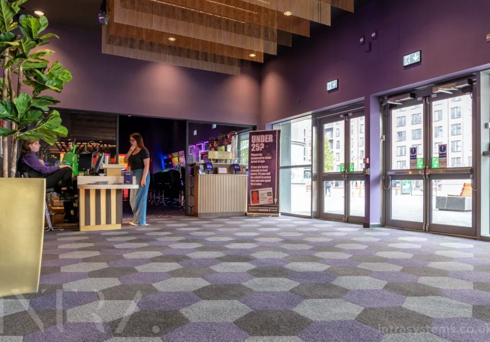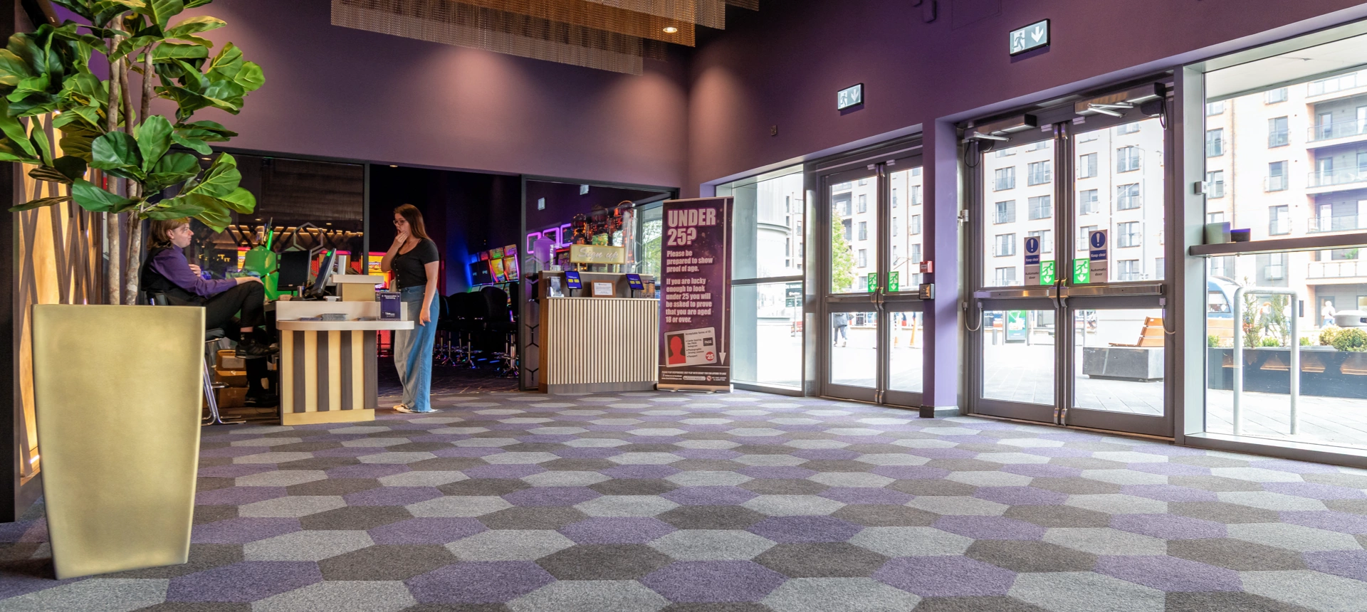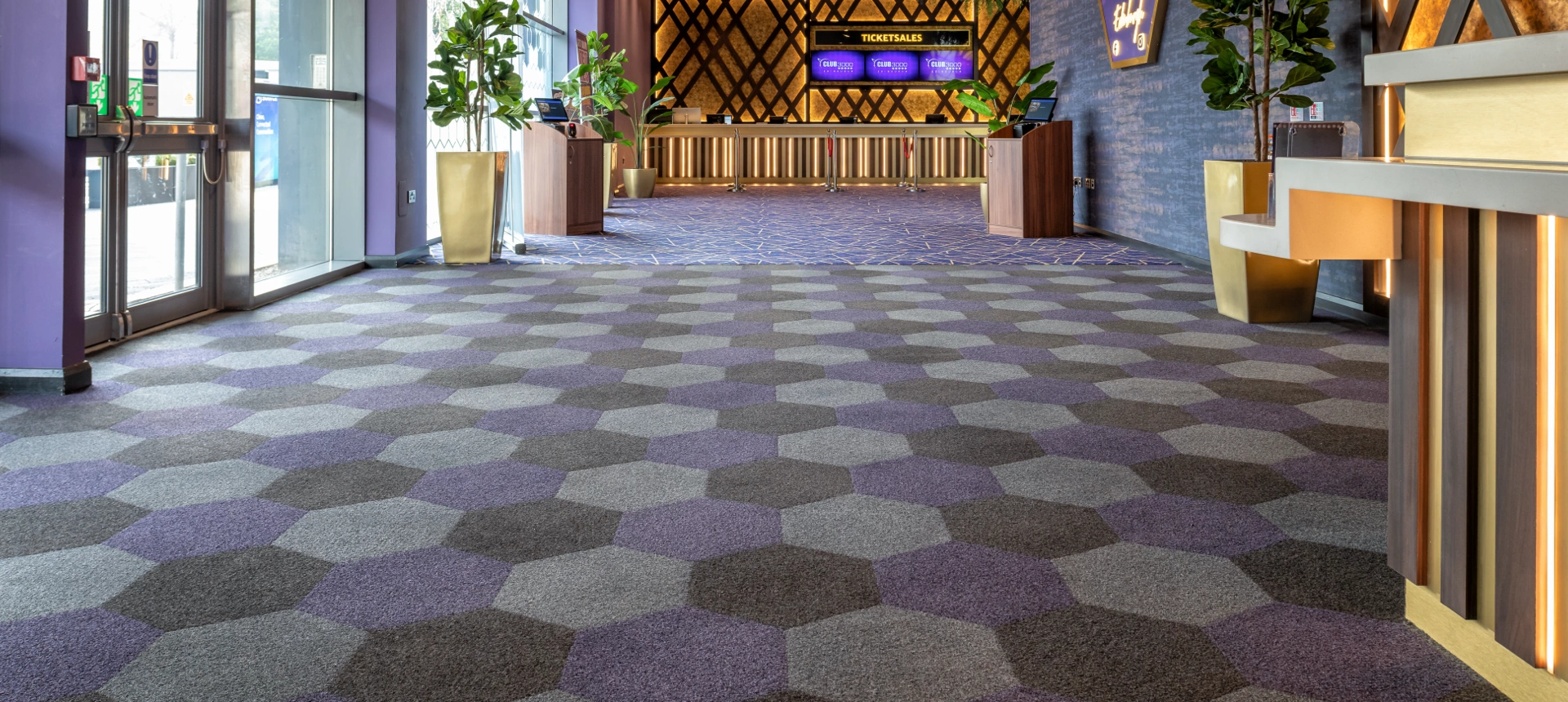 Geometric shapes and texture fill the venue for a dynamic design effect. They had devised a hexagonal entrance sign for each new venue and was keen to find a hard-wearing geometric Entrance Matting design that fit within their budget.