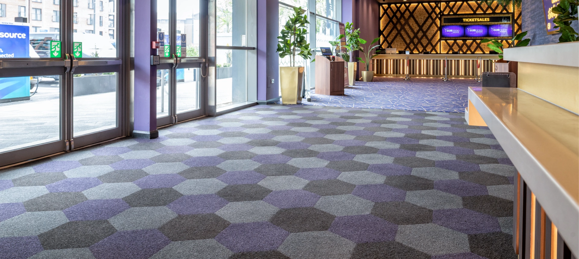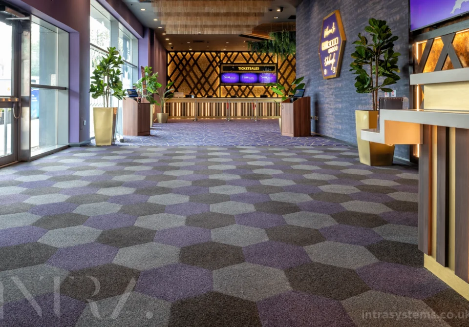 | Specification | INTRAlux Elite Entrance Matting, cut to hexagons, Grey 606, Black 608 and Purple 609. |