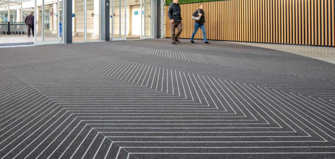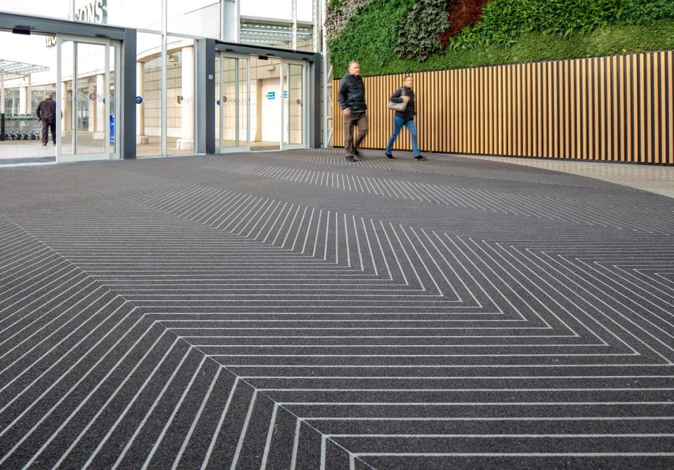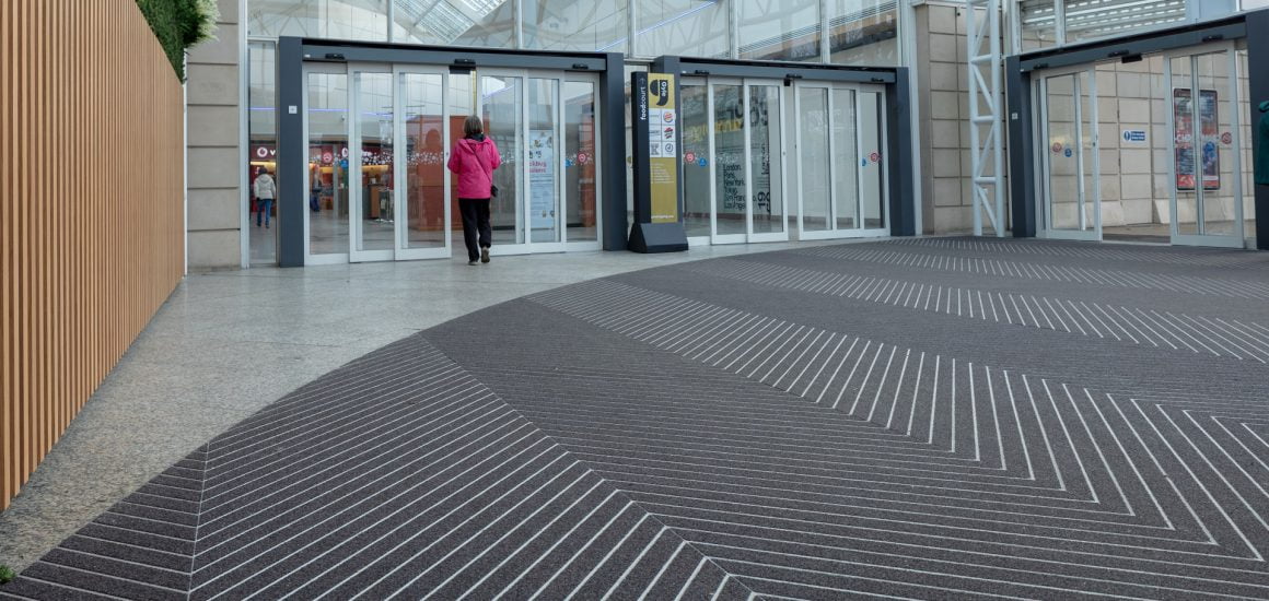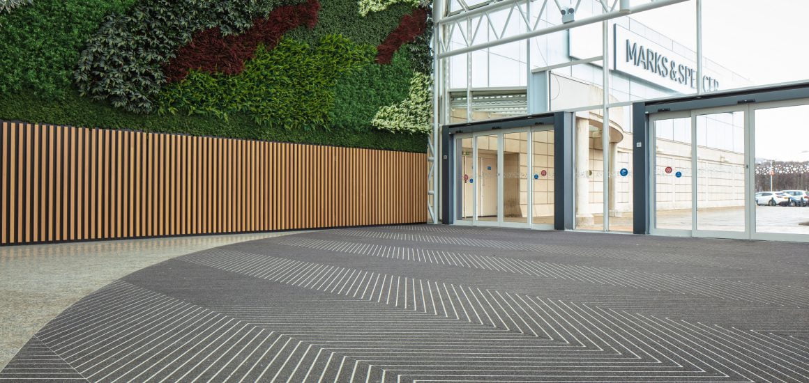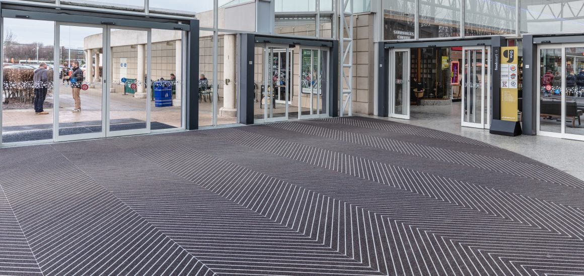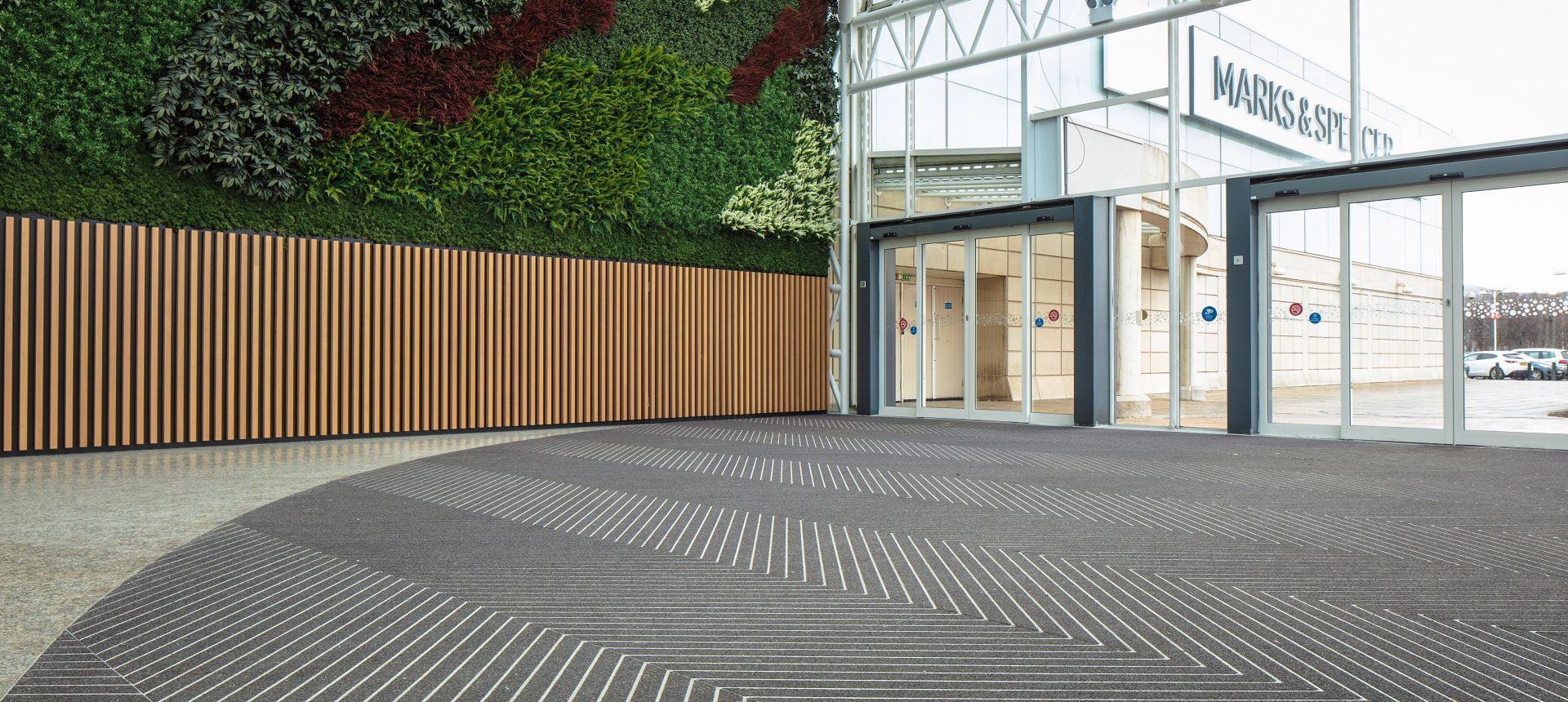 At Gyle Shopping Centre, INTRAform DM was installed in a chevron pattern to create a stunning yet highly functional entrance design.