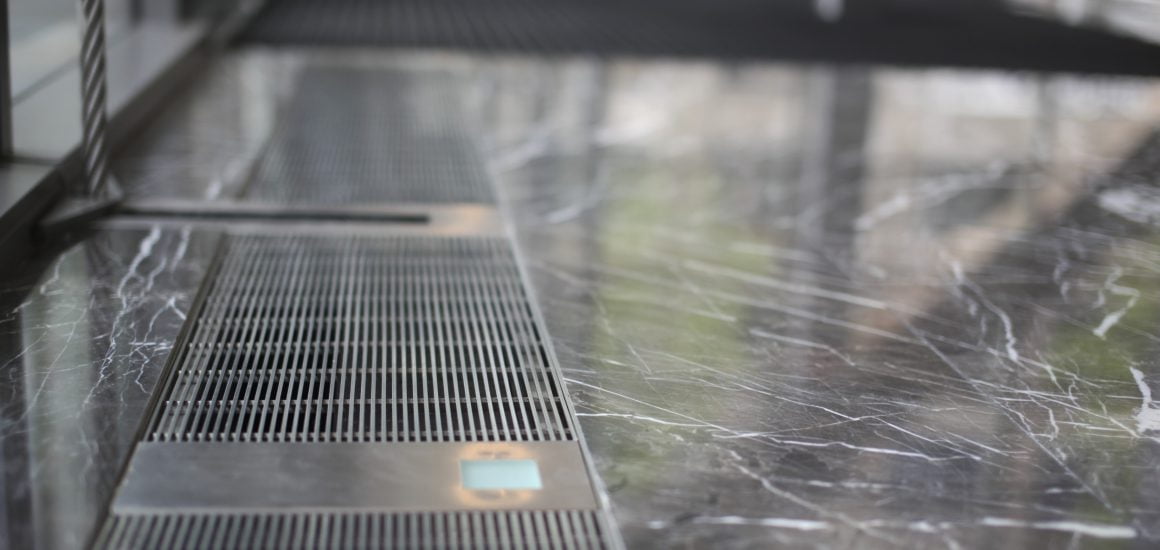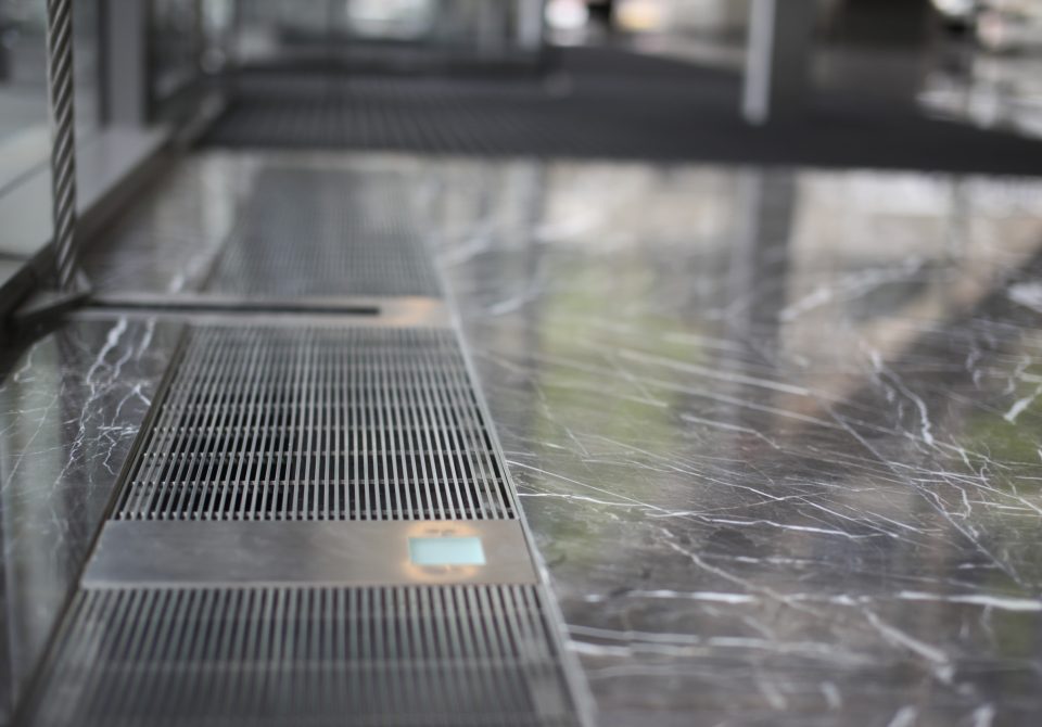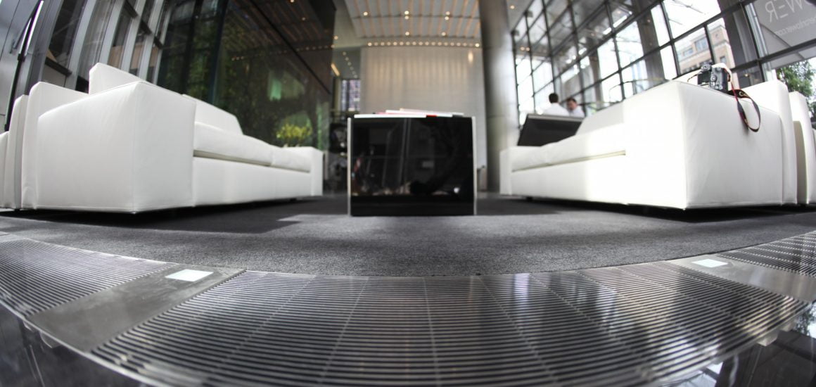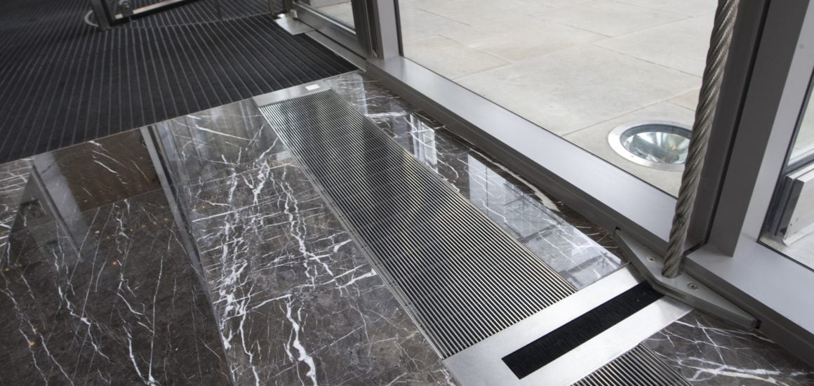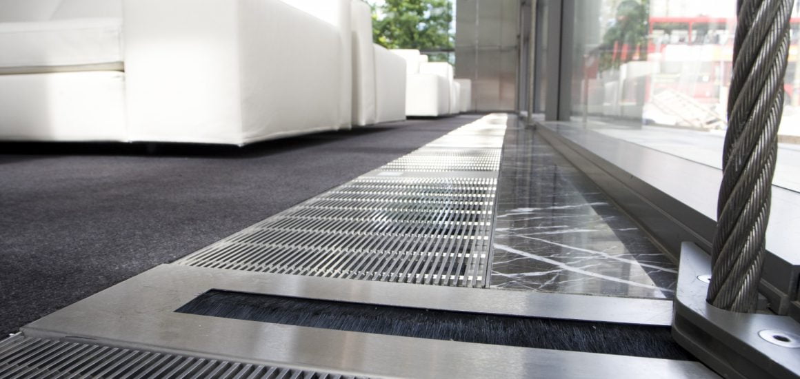 The INTRAgrille stainless steel grilles were installed to the service trench which runs around the internal perimeter, complimenting the high quality interior finishes of this excellent buildings.