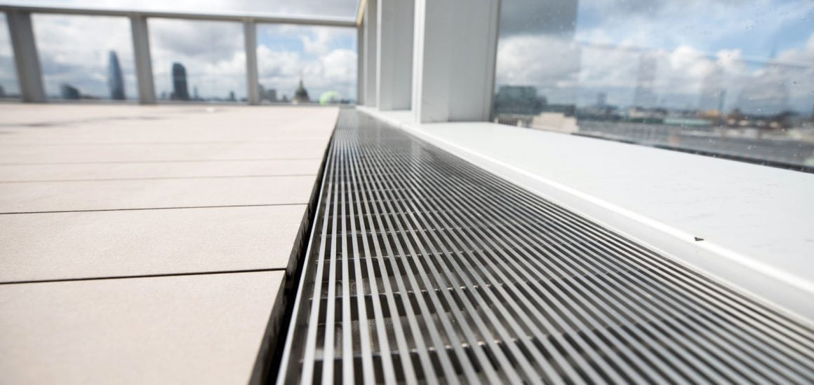 On levels ten and twelve INTRAgrille is used to mask drainage trenches, creating a highly functional design feature.
