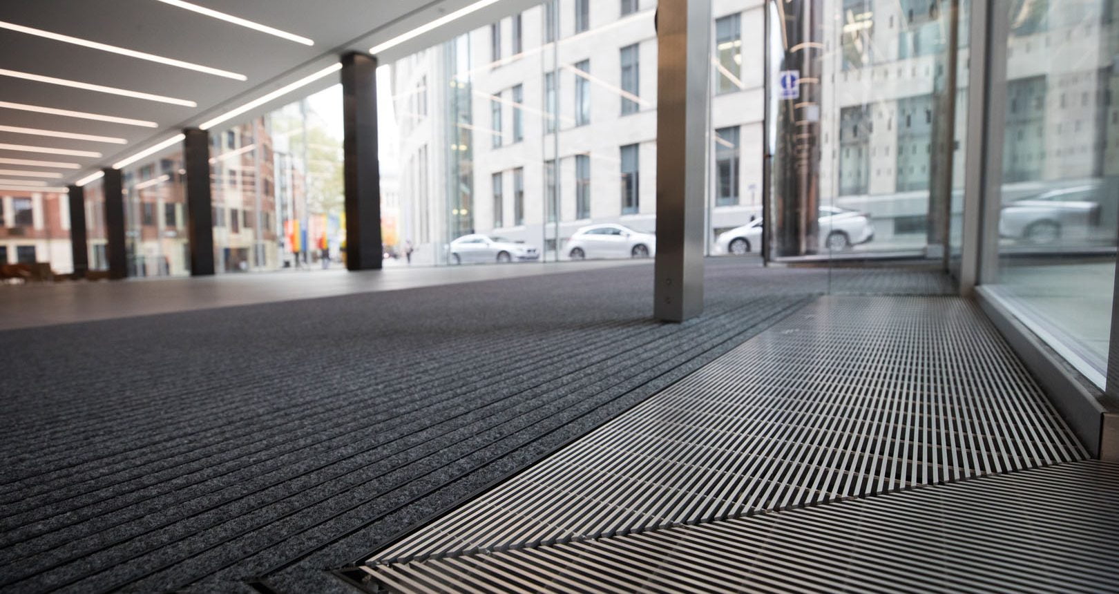 On the ground floor INTRAgrille is used to create stunning linear trench covers, working harmoniously with the entrance matting and flooring beyond.
