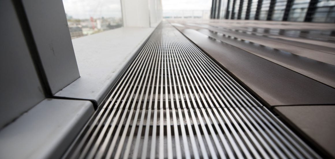 Designed to meet the latest environmental performance requirements and to achieve BREEAM 2014 Excellent rating, the project uses INTRAgrille architectural grilles as the coverings for drainage systems and internal trenches.
