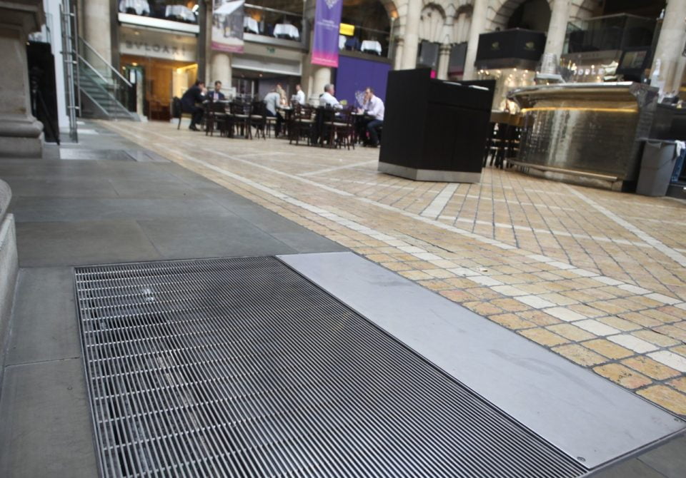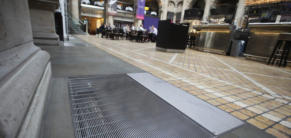 One of the City’s most magnificent landmarks and once the City’s prime trading floor, this elegant building is home to some of the most well known luxury brand names in the world. With its combination of expensive shopping, elegant architecture and superior food and drink, Royal Exchange makes a fascinating visit. The INTRAgrille Stainless Steel grilles were bespoke made as covers for the floor access points positioned around the perimeter of the internal courtyard.